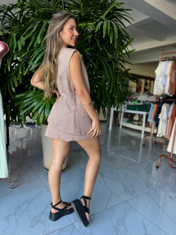 Confeccionado em tecido de alfaiataria, possui caimento impecável que valoriza a silhueta, oferecendo conforto e estrutura na medida certa. A modelagem ajustada cria uma proposta elegante e feminina, ideal para compor looks coordenados ou ser usado como destaque da produção.