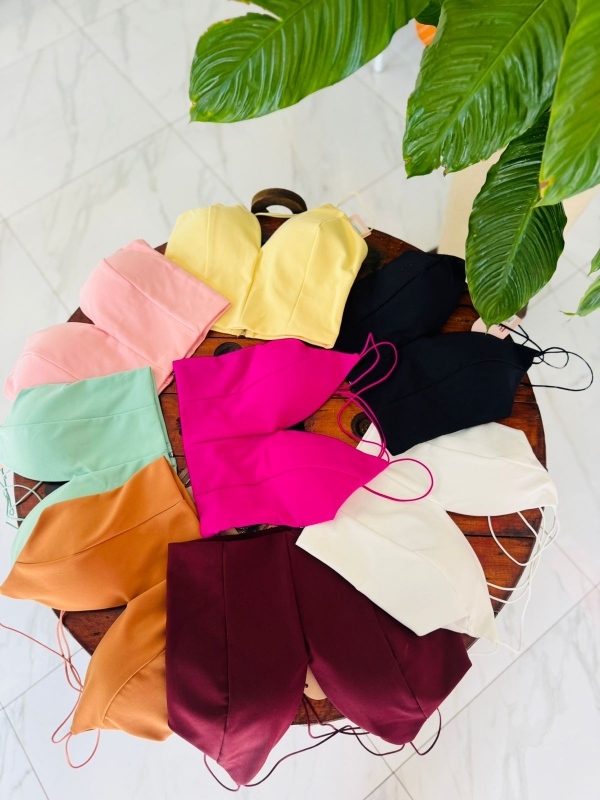 Disponível nas cores Raspberry (pink vivo de verão), Verde Água, Amarelo Manteiga, Off White, Preto, Merlot, Caramelo e Rosa Candy — uma cartela moderna e versátil que combina com todas as ocasiões.
